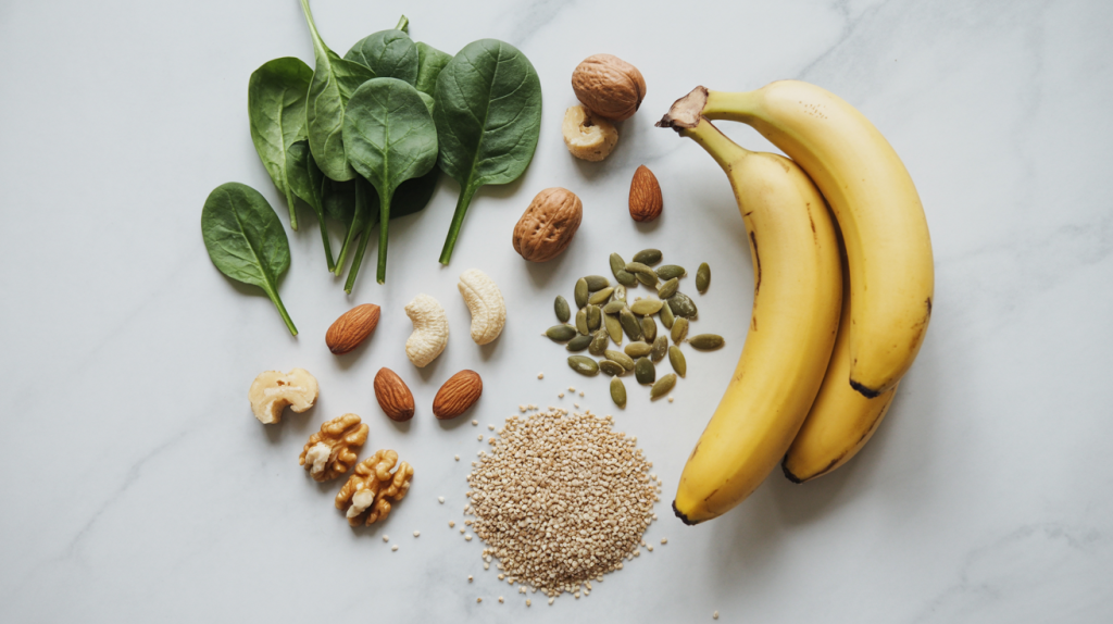 A: Klar, da hab ich ein paar super einfache Tipps für dich! Denk an Nüsse und Samen – Mandeln, Walnüsse, Chiasamen. Die sind voller Magnesium und Omega-3. Einfach ins Müsli, in den Joghurt oder als Snack zwischendurch. Dann Avocados, die sind auch ein Hit, voller gesunder Fette und B-Vitamine. Oder grünes Blattgemüse wie Spinat und Grünkohl, die liefern auch viel Magnesium. Und Fisch, besonders fetter Fisch wie Lachs, ist super wegen der Omega-3-Fettsäuren. Du musst da keine komplizierten Rezepte zaubern. Ein Lachsfilet mit etwas Spinat, ein paar Nüsse über den Salat – schon hast du was Gutes getan. Und dunkle Schokolade, ja, die darf auch mal sein, aber in Maßen, denn sie enthält auch Magnesium und Antioxidantien. Ist doch machbar, oder?